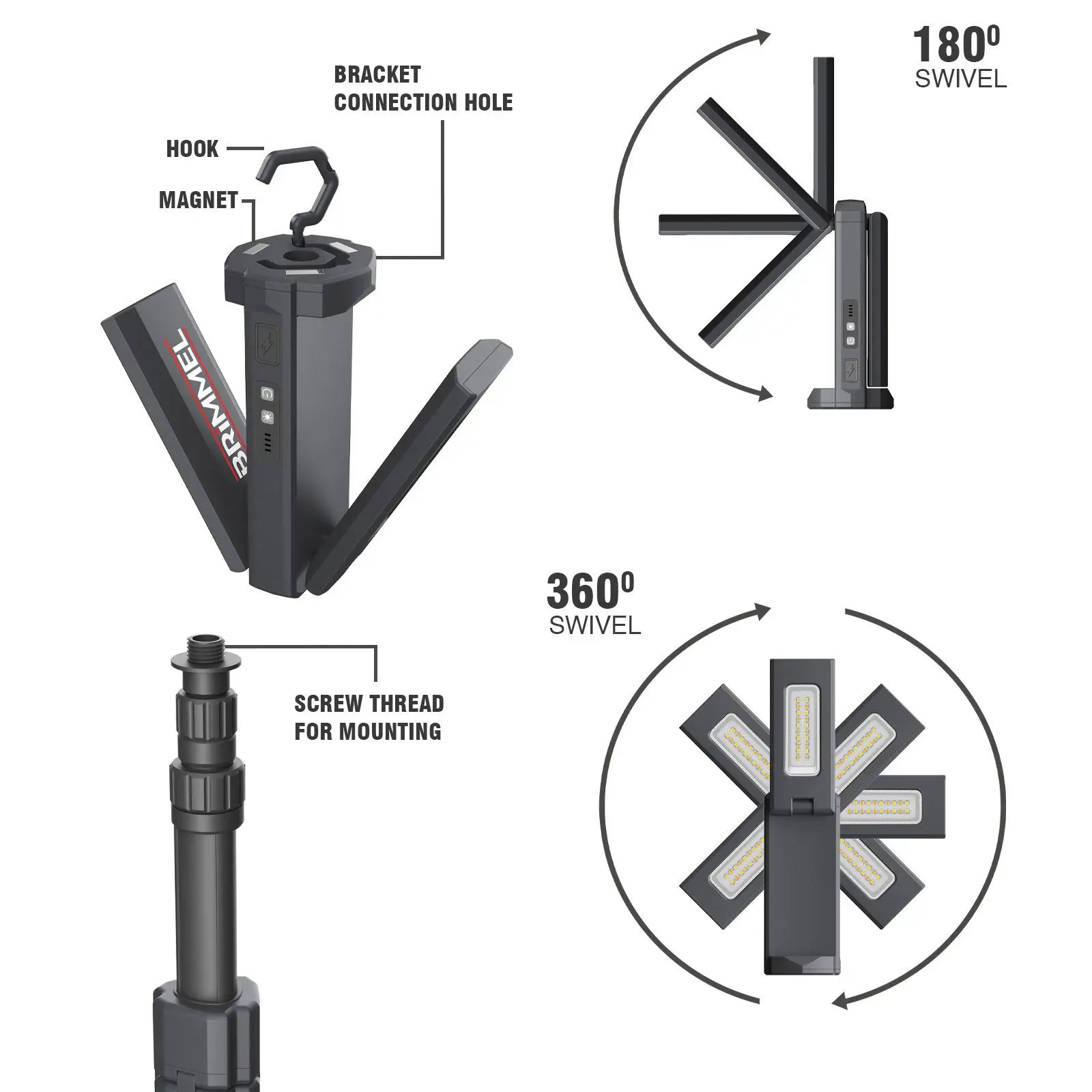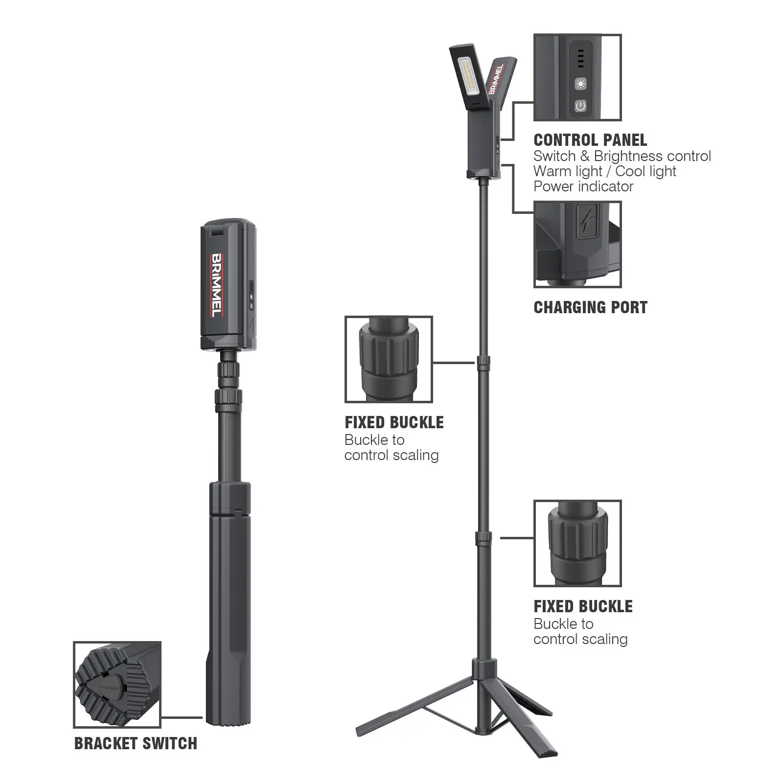 Vertak Factory 2000 Lumen Portable Rechargeable Two Head Led Tripod Flood Foldable Working Light Led Tripod Work Light